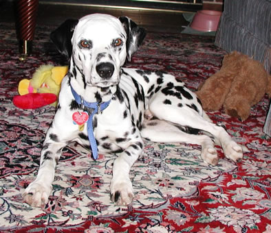 Riley came to us in October of 2004, a tense, skinny little Dalmatian. He escaped our yard several times in the first week as he could climb through any small opening. After much love and attention he realized he was much happier inside our home and fenced yard than outside and never tried to escape again. He would walk/run for hours a day pulling us along to explore the neighborhoods of first Dallas and later Houston. He developed severe back problems and underwent two surgeries to help the problem. He never complained. If he fell over, he would simply work to right himself and move on. Unfortunately his physical problems finally overcame his energy on November 1, 2011. Thank you, Riley for adopting us and sharing your boundless enthusiasm with slobbery kisses and endless walks. Although our hearts and minds are full of grief, we are happy contemplating you running free of pain exploring every new tree, hedge and fence you can find.