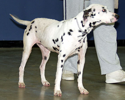 This pretty three year old female is lightly marked with black and white spots. Abby is a small girl and only weighs about 40 pounds. This beautiful little dog is friendly and playful and would make a perfect pet for someone looking for a smaller female.