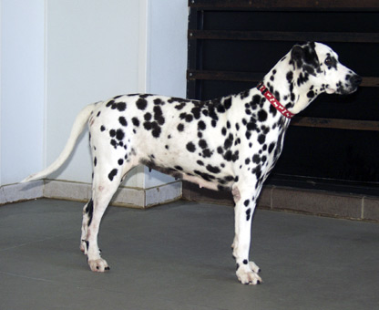 cute two year old female is nicely marked with black and white spots.