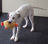 This adorable 16 week old female is lightly marked with brown and white spots. Casey is a sweet, friendly girl who loves to play and already knows some simple commands. This lucky pup now has the forever home she's been dreaming of.