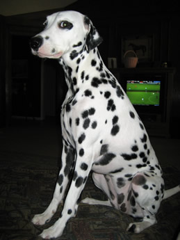 This lovely young female is 2 years old and marked with black and white spots. Daisy has already been spayed and is current on all her shots. She is housebroken and used to living in a home environment. Daisy loves to smile and is full of energy with lots of love to spread around.