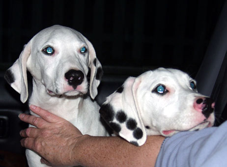 These adorable 12 week old male puppies are lightly spotted and friendly with people and other dogs. These beautiful healthy dogs are from the same litter and either one, or maybe both, would make a wonderful addition to your family.