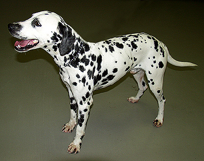 handsome 4 year old male is nicely marked with black and white spots.