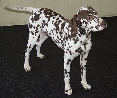 This handsome two year old male is nicely marked with brown and white spots. This friendly and easygoing boy now has a wonderful new home with a family who loves and appreciates him.