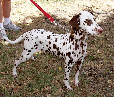 This beautiful, small four year old female is nicely marked with brown and white spots. Laura is a sweet, friendly girl and we're delighted that she now has a permanent home with a wonderful family who who fell in love with this pretty liver spotted female.