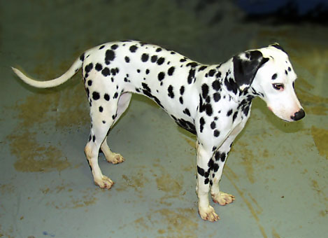adorable 8 month old female Dalmatian puppy is nicely marked with