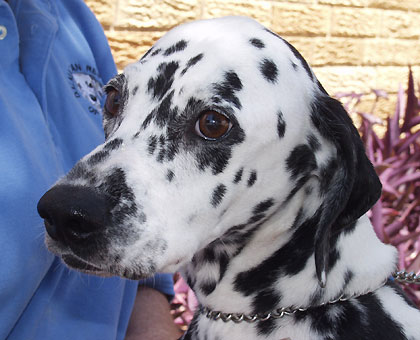 This beautiful 3 year old female is heavily marked with black and white spots. Lizzy is a shy girl who has had a hard life. She is the mother of Thelma and we're delighted that she's found her forever home and now has a chance to lead a normal life with a family who loves and appreciates her.