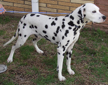 This handsome 5 year old male is nicely marked with black and white spots. Lucky is still a bit shy and might have been abused. He appears to get along with women better than men. Lucky saw his luck take a turn for the better when he got a second chance with a loving family who will help him gain the confidence he deserves.