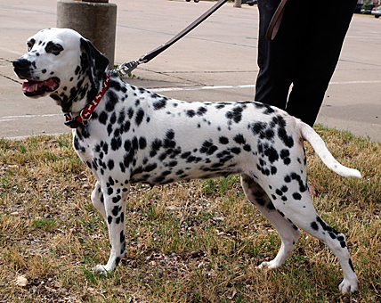 Madison is a small, very pretty four year old female who is nicely marked with black and white spots. This happy girl loves to be around people and appears to get along well with other animals. THis lucky girl now has a wonderful new home with a family who loves and appreciates her. |
