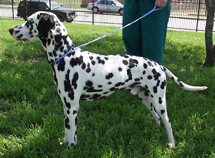 very handsome two year old male Dalmatian is nicely marked with