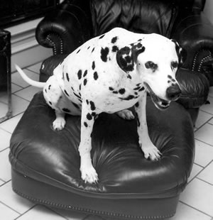 that every Dalmatian needs a favorite chair. Lucky found his in a strategic